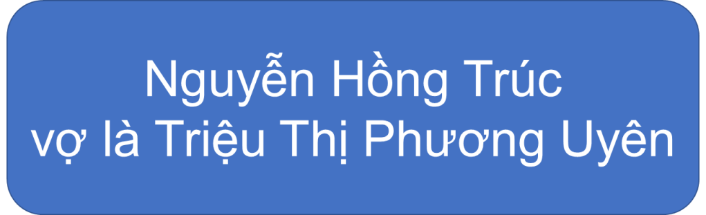 Nguyễn Hồng Trúc Cháu đời thứ 6 Share: Share on X (Opens in new window) X Share on Facebook (Opens in new window) Facebook Share on WhatsApp (Opens in new window) WhatsApp Email a link to a friend (Opens in new window) Email Share on Messenger (Opens in new window) Messenger Print (Opens in new window) Print Like Loading...