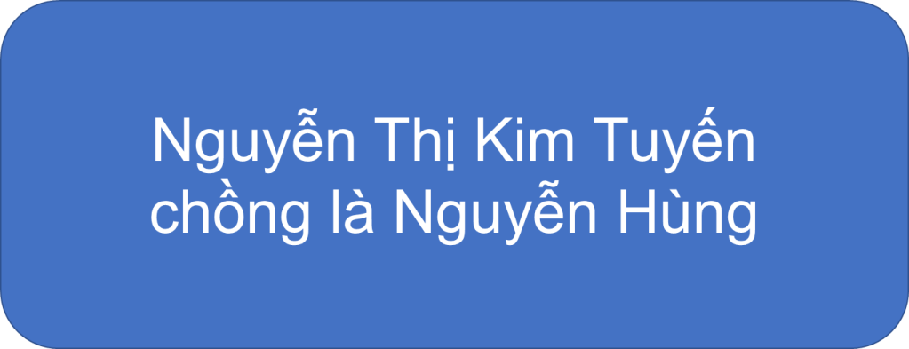 Nguyễn Thị Kim Tuyến Cháu đời thứ 5 Share: Share on X (Opens in new window) X Share on Facebook (Opens in new window) Facebook Share on WhatsApp (Opens in new window) WhatsApp Email a link to a friend (Opens in new window) Email Share on Messenger (Opens in new window) Messenger Print (Opens in new window) Print Like Loading...